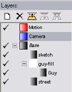 - Set up by default to draw on a Base layer in black and on a Camera layer in blue.